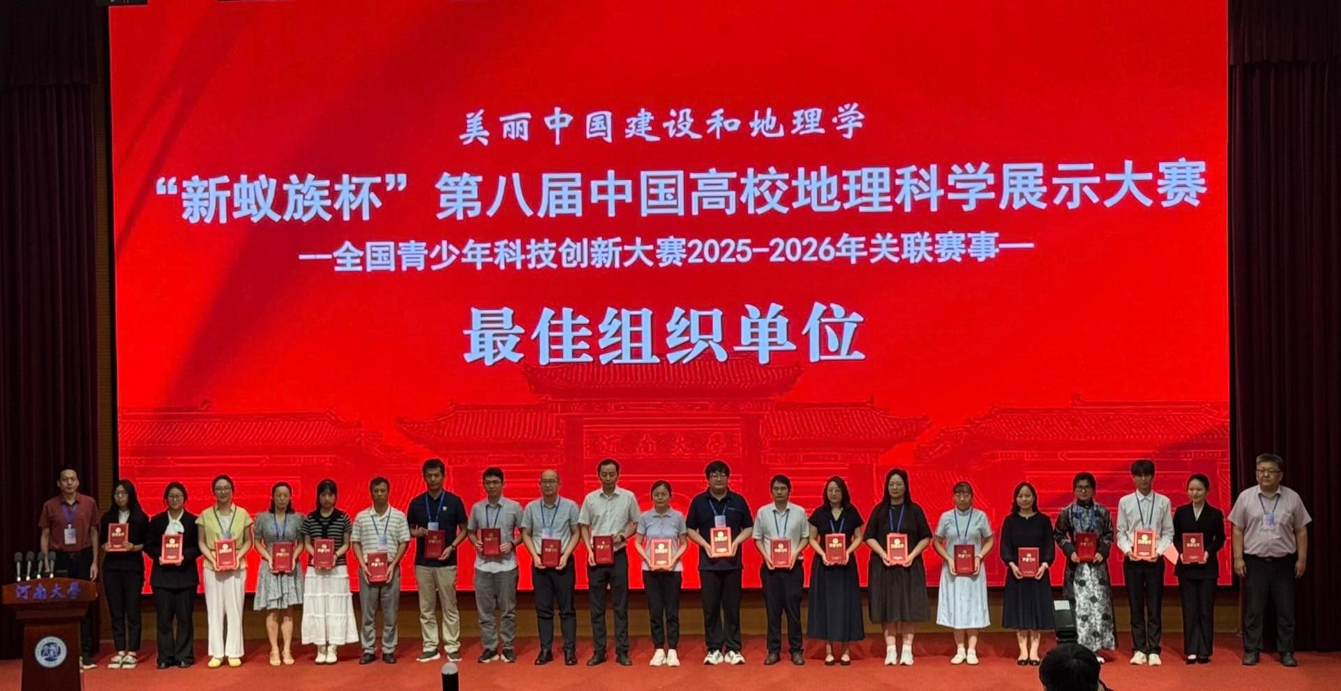 2025年7月25日至27日,“新蚁族杯”第八届中国高校地理科学展示大赛全国总决赛在河南大学(开封)成功举办。sunbet游戏官网“绿原守望者队”参与人文地理组别展示。经过多轮激烈角逐,最终斩获人文地理团体一等奖。与此同时,sunbet游戏官网凭借优异的组织表现,荣获“最佳组织单位”称号。