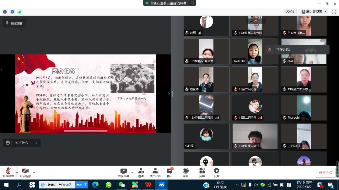 为促进同学们思想进步、境界提升、行动自觉,sunbet游戏官网各团支部组织团支部全体同学于2022年3月初开展了“学雷锋”主题云团日活动,讲述雷锋故事,分享雷锋精神,探讨对新时代雷锋精神的理解和感悟,深化对志愿服务活动的理解与认同。